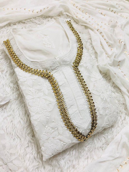 White Georgette Chikankari Suit with Beautiful Handwork Embroidery Latest Online