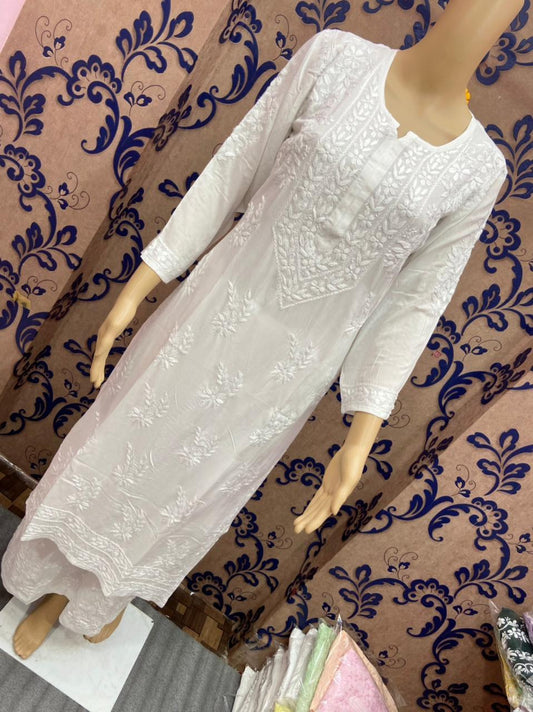 White Viscose Chikankari Kurti with 3-D Thread Handwork Embroidery Latest Online