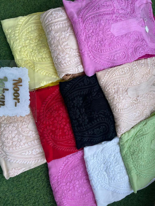 Explore the timeless artistry of Chikankari, a revered embroidery technique originating from Lucknow, India. With delicate threadwork adorning fine fabrics, Chikankari embodies elegance and tradition. Discover the intricate beauty of Chikankari Embroidery, meticulously handcrafted by skilled artisans. From graceful Chikankari Dresses and Kurtis to opulent Sarees and Lehengas, each garment tells a story of heritage and craftsmanship. Elevate your wardrobe with Chikankari Suits and Tops, perfect for both formal affairs and everyday wear. Immerse yourself in the allure of Chikankari Fabrics, from airy cotton to luxurious georgette, offering versatility and sophistication. Experience the timeless charm of Chikankari and indulge in its exquisite craftsmanship.