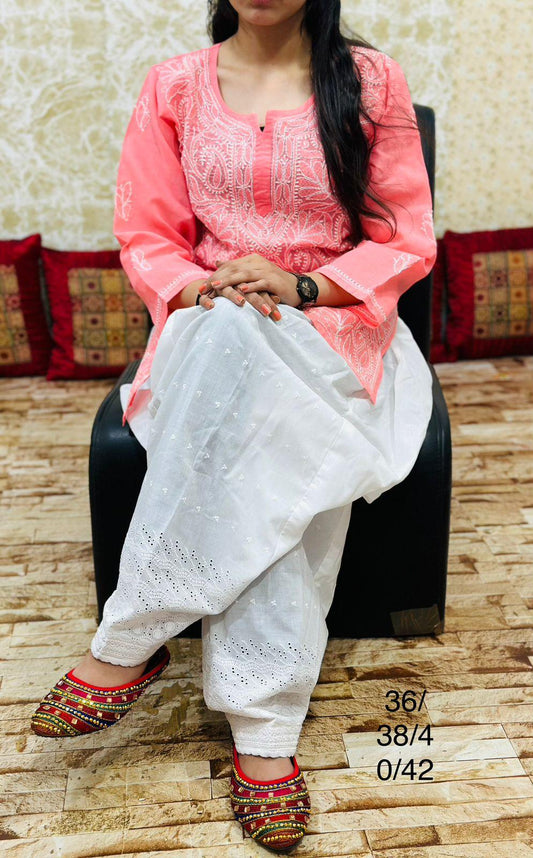 Light Pink Desi Kurti and Salwar with Beautiful Lucknowi Chikan Embroidery