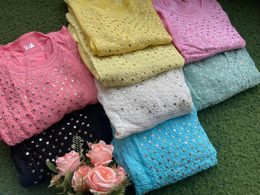 Explore the timeless artistry of Chikankari, a revered embroidery technique originating from Lucknow, India. With delicate threadwork adorning fine fabrics, Chikankari embodies elegance and tradition. Discover the intricate beauty of Chikankari Embroidery, meticulously handcrafted by skilled artisans. From graceful Chikankari Dresses and Kurtis to opulent Sarees and Lehengas, each garment tells a story of heritage and craftsmanship. Elevate your wardrobe with Chikankari Suits and Tops, perfect for both formal affairs and everyday wear. Immerse yourself in the allure of Chikankari Fabrics, from airy cotton to luxurious georgette, offering versatility and sophistication. Experience the timeless charm of Chikankari and indulge in its exquisite craftsmanship.