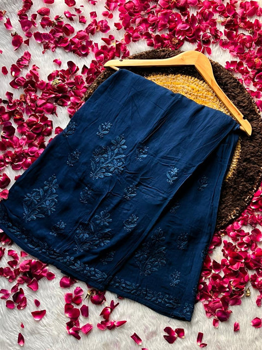Dark Blue Luxurious 3D Chikankari Viscose Kurti and Plazo Set