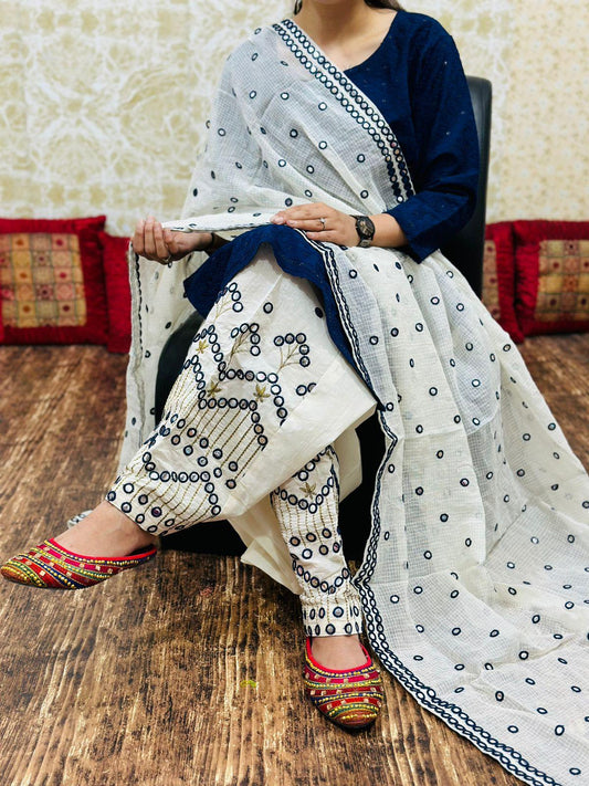 Navy Blue Chikan Kurti with Digital Patiala Salwar Set
