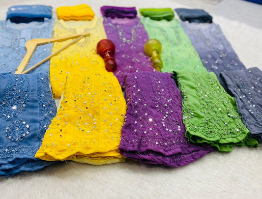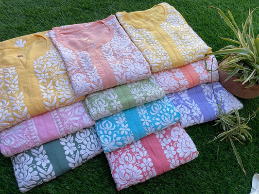 Explore the timeless artistry of Chikankari, a revered embroidery technique originating from Lucknow, India. With delicate threadwork adorning fine fabrics, Chikankari embodies elegance and tradition. Discover the intricate beauty of Chikankari Embroidery, meticulously handcrafted by skilled artisans. From graceful Chikankari Dresses and Kurtis to opulent Sarees and Lehengas, each garment tells a story of heritage and craftsmanship. Elevate your wardrobe with Chikankari Suits and Tops, perfect for both formal affairs and everyday wear. Immerse yourself in the allure of Chikankari Fabrics, from airy cotton to luxurious georgette, offering versatility and sophistication. Experience the timeless charm of Chikankari and indulge in its exquisite craftsmanship.