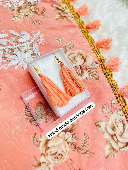 Peach Elegant Lucknowi Chikankari Cotton Kurti 3 pc Set
