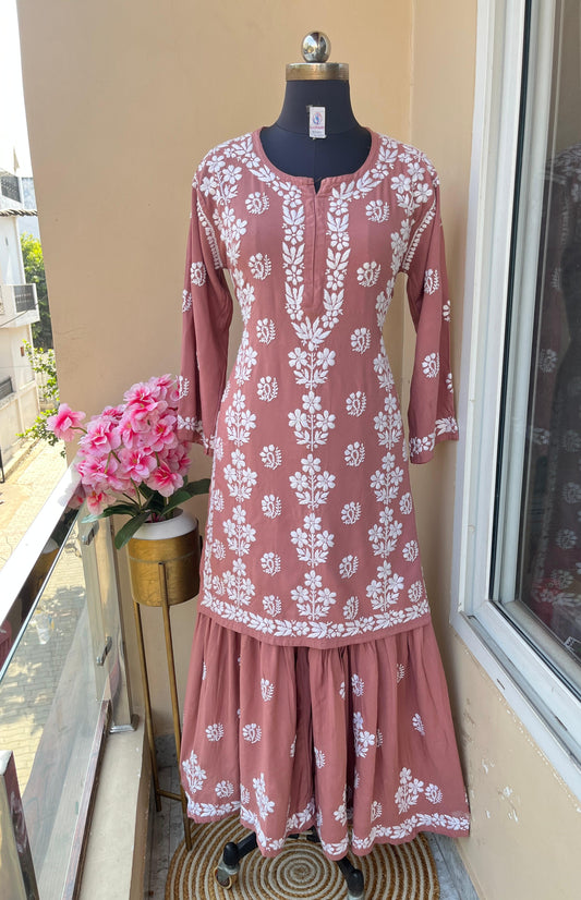 Dusty Pink Premium Kurti & Gharara Co-ord Set – Lucknow Chikankari Handwork