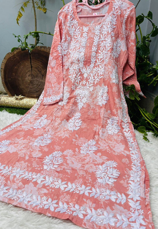 Dusty Pink Chinon Nyra Style 3D handwork Lucknow Chikankari Kurti Set