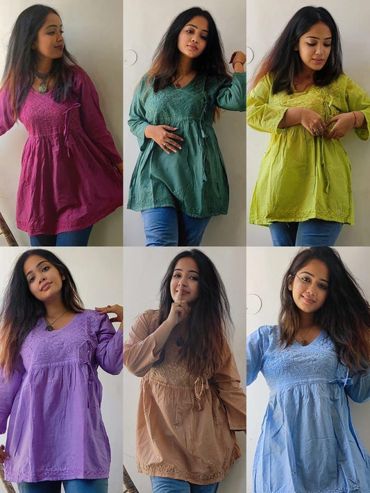 Dark Pink Lucknow Chikankari Whisper mul mul Cotton Angrakha Style Short kurti