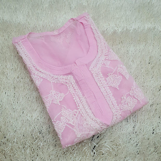 Pink Handcrafted Lucknowi Chikankari Style Rayon Kurti Set