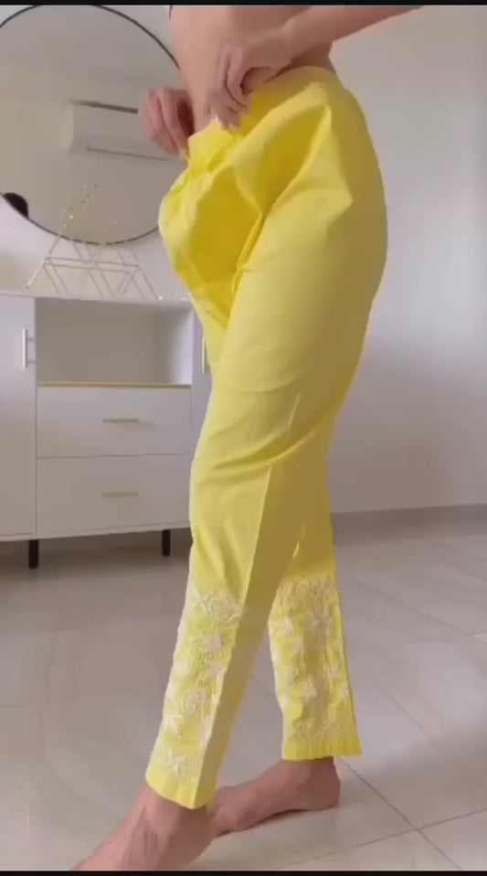 Light Yellow Cotton Chikankari Hand Work Kurti Pant Sets Plus Sizes