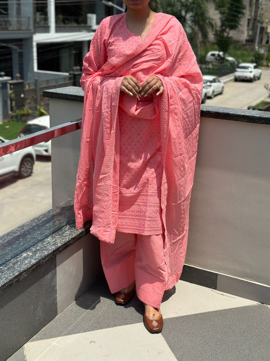 Pink Elegant Chikankari Set with Farshi Salwar ā Pure Cotton Ensemble