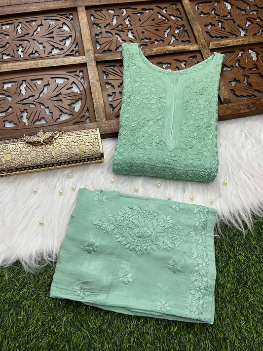 Mint Green Premium Rayon Chikankari Kurti Palazzo Set ā Lucknowi Handwork | Sizes 36ā48