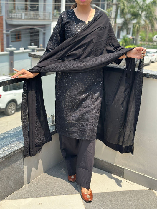 Black Elegant Chikankari Set with Farshi Salwar ā Pure Cotton Ensemble