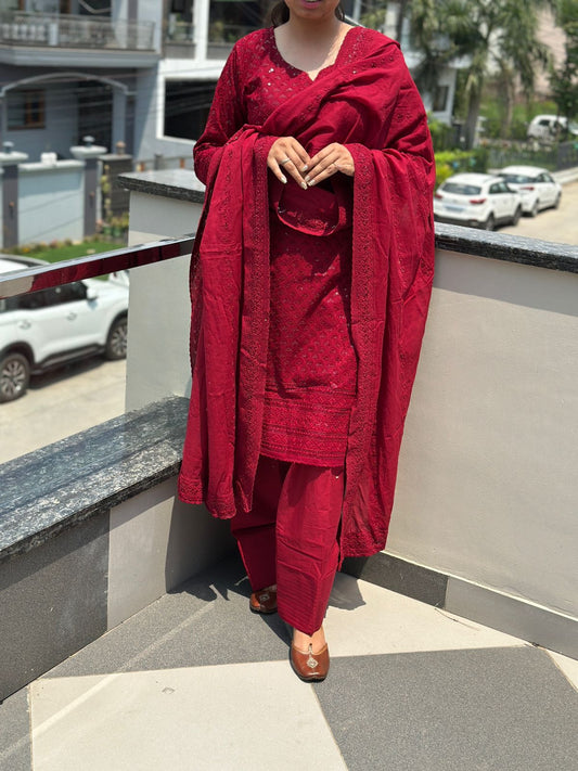 Maroon Elegant Chikankari Set with Farshi Salwar ā Pure Cotton Ensemble