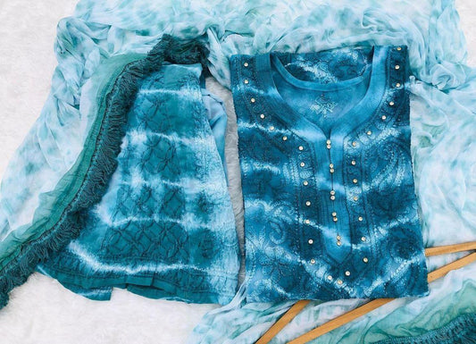 Pastel Stellar Chikankari Elegance - Pakistani Dupatta & Kurti Palazzo Set