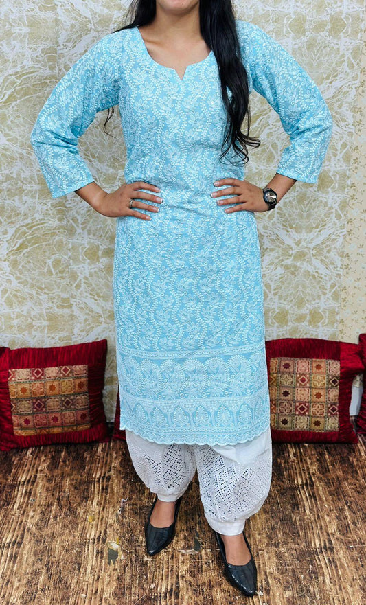 Deep Blue Premium Rayon Chikankari Kurti Palazzo Set ā Lucknowi Handwork | Sizes 36ā48