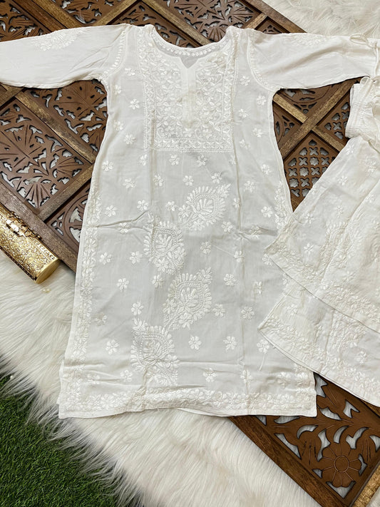 White Premium Rayon Chikankari Kurti Palazzo Set ā Lucknowi Handwork | Sizes 36ā48