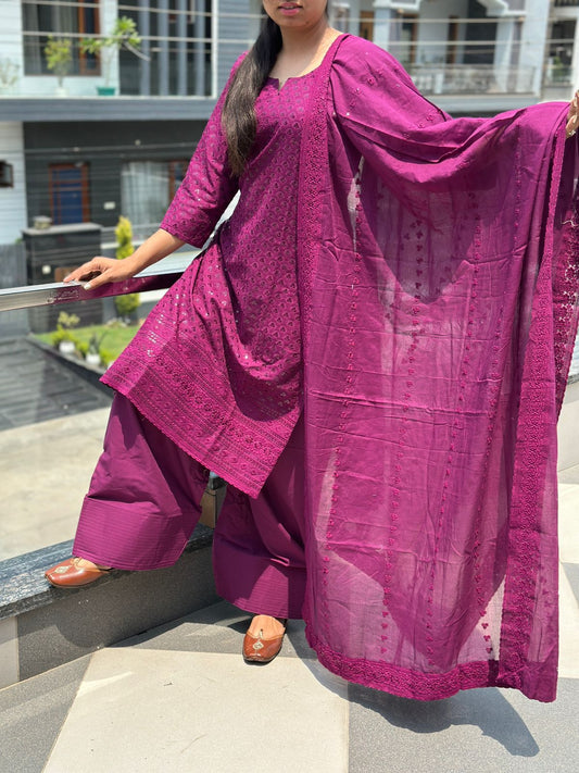 Wine Elegant Chikankari Set with Farshi Salwar ā Pure Cotton Ensemble