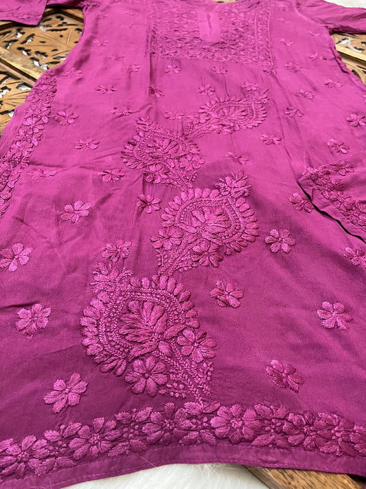 Purple Lucknowi Chikankari Plus Size Premium Rayon Short Kurti & Pallazo Set ⨠(Upto 6 XL)