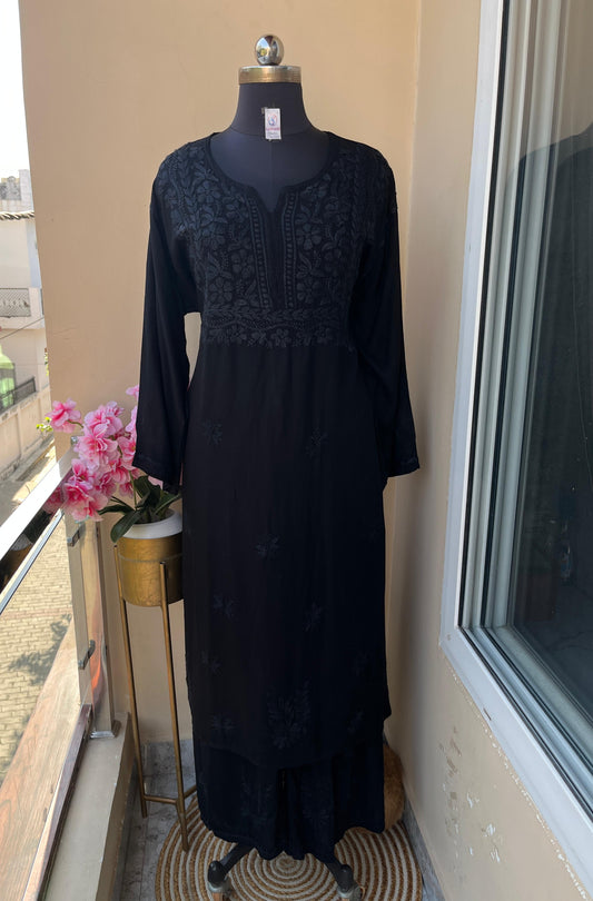 Black PLUS SIZE PREMIUM Lucknow Chikankari Handcrafted Rayon Kurti & Palazzo Set