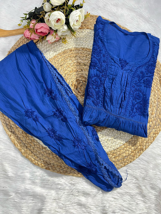 Dark Blue Lucknowi Chikankari Premium Heavy Designer Modal Palazzo Set