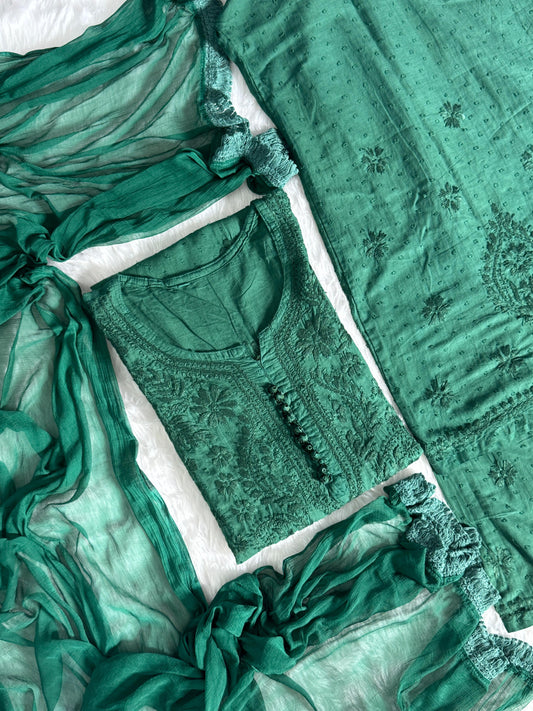 Dark Green Premium Lucknow Chikankari Cotton Kurti & Palazzo Set