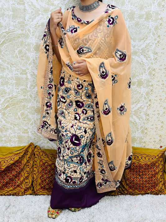 Peach Premium Multicolor Beautiful Super Georgette Phulkari Punjabi Suits