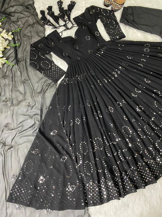 Black Premium Designer Anarkali Suit Set with 9mm Sequin Embroidery – Ready to Wear