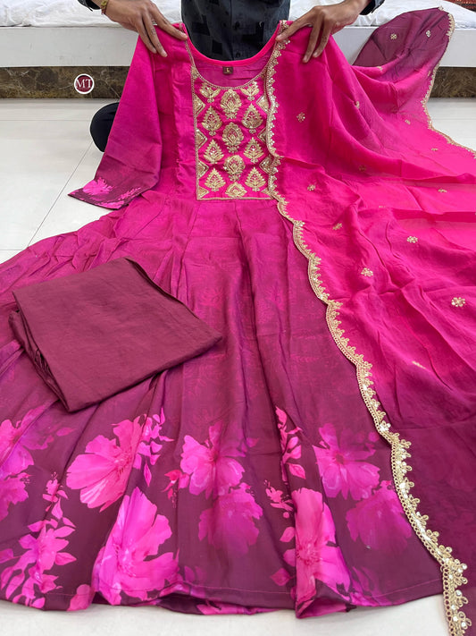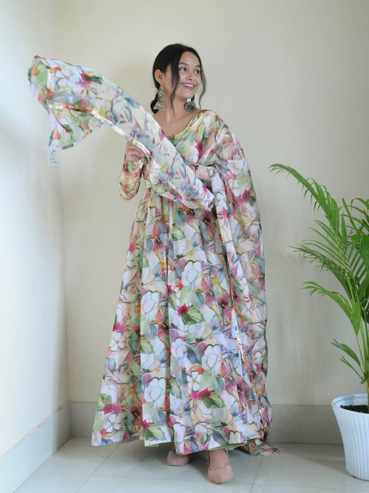 New Party Wear Organza Taby Silk Gown with Digital Print Dupatta