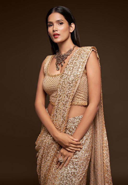 Beige Heavy Sequins Work Bridesmaid Saree with Blouse