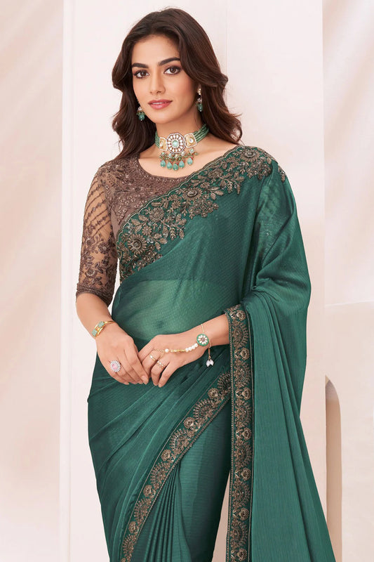 Green Elegant Party Wear Georgette Saree with Embroidered Banglori Silk Blouse