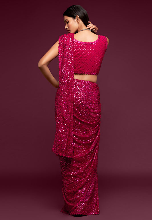 Majenta Heavy Sequins Work Bridesmaid Saree with Blouse