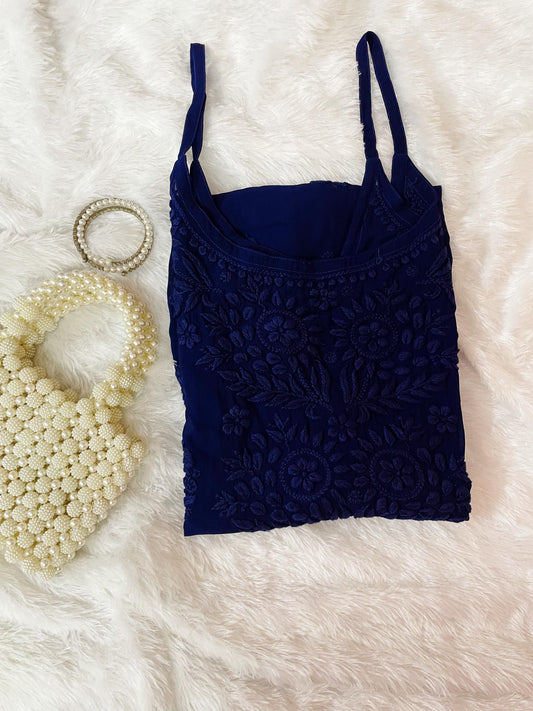 Navy Premium Noodle Strap Viscose Handwork Lucknow Chikankari Kurti
