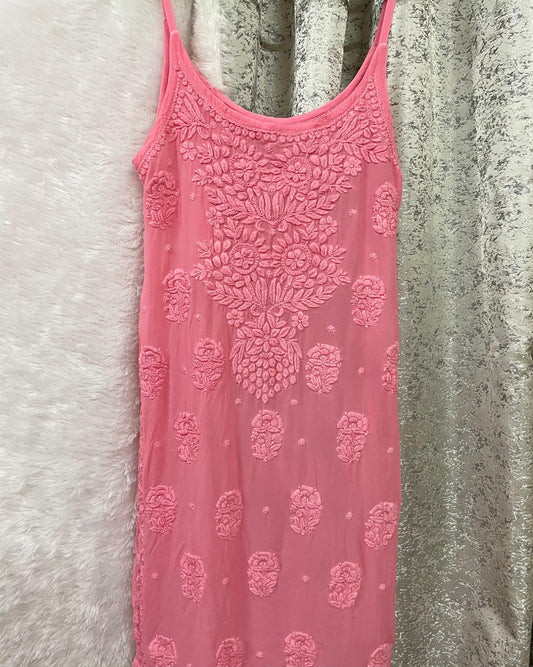 Pink Premium Noodle Strap Viscose Handwork Lucknow Chikankari Kurti