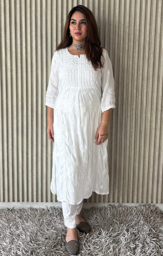 Classic White Ethereal Dyeable Modal Chikankari Kurta Set