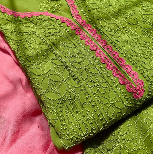 Verdant Green Chikankari Elegance Ensemble