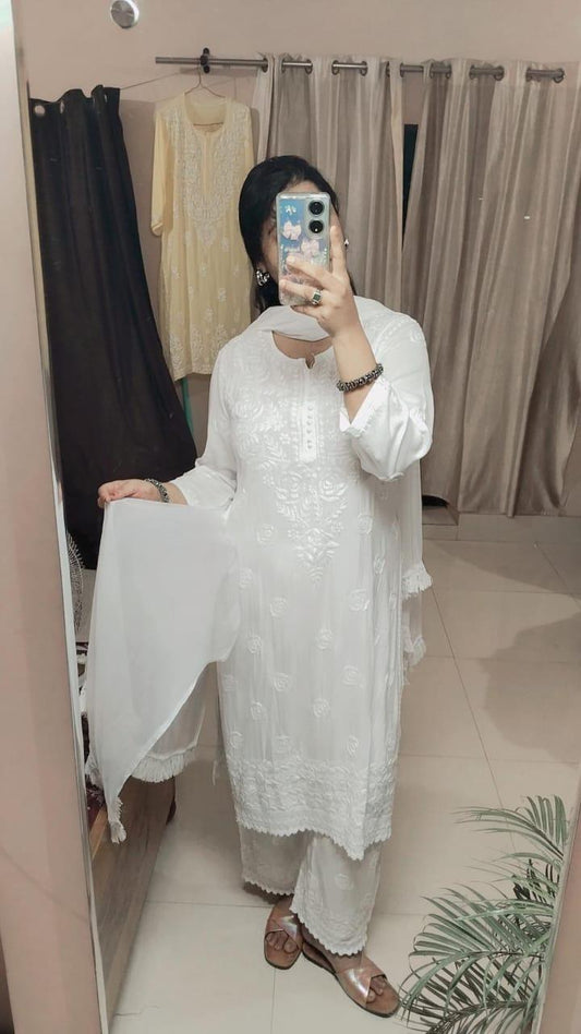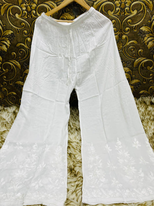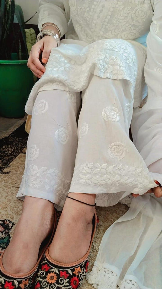 White Elegant Euphoria: Luxe Lucknowi Chikankari Modal Palazzo Set