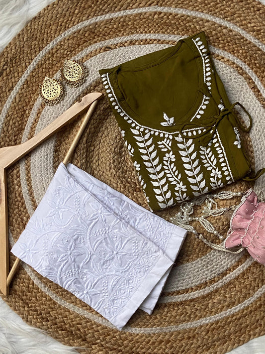 Olive Chic Minimal Rayon Angarkha with Lycra Pants