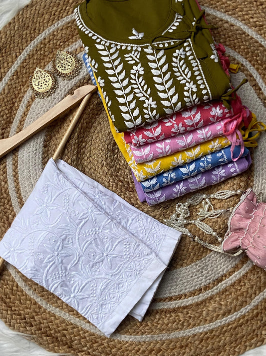 Explore the timeless artistry of Chikankari, a revered embroidery technique originating from Lucknow, India. With delicate threadwork adorning fine fabrics, Chikankari embodies elegance and tradition. Discover the intricate beauty of Chikankari Embroidery, meticulously handcrafted by skilled artisans. From graceful Chikankari Dresses and Kurtis to opulent Sarees and Lehengas, each garment tells a story of heritage and craftsmanship. Elevate your wardrobe with Chikankari Suits and Tops, perfect for both formal affairs and everyday wear. Immerse yourself in the allure of Chikankari Fabrics, from airy cotton to luxurious georgette, offering versatility and sophistication. Experience the timeless charm of Chikankari and indulge in its exquisite craftsmanship.