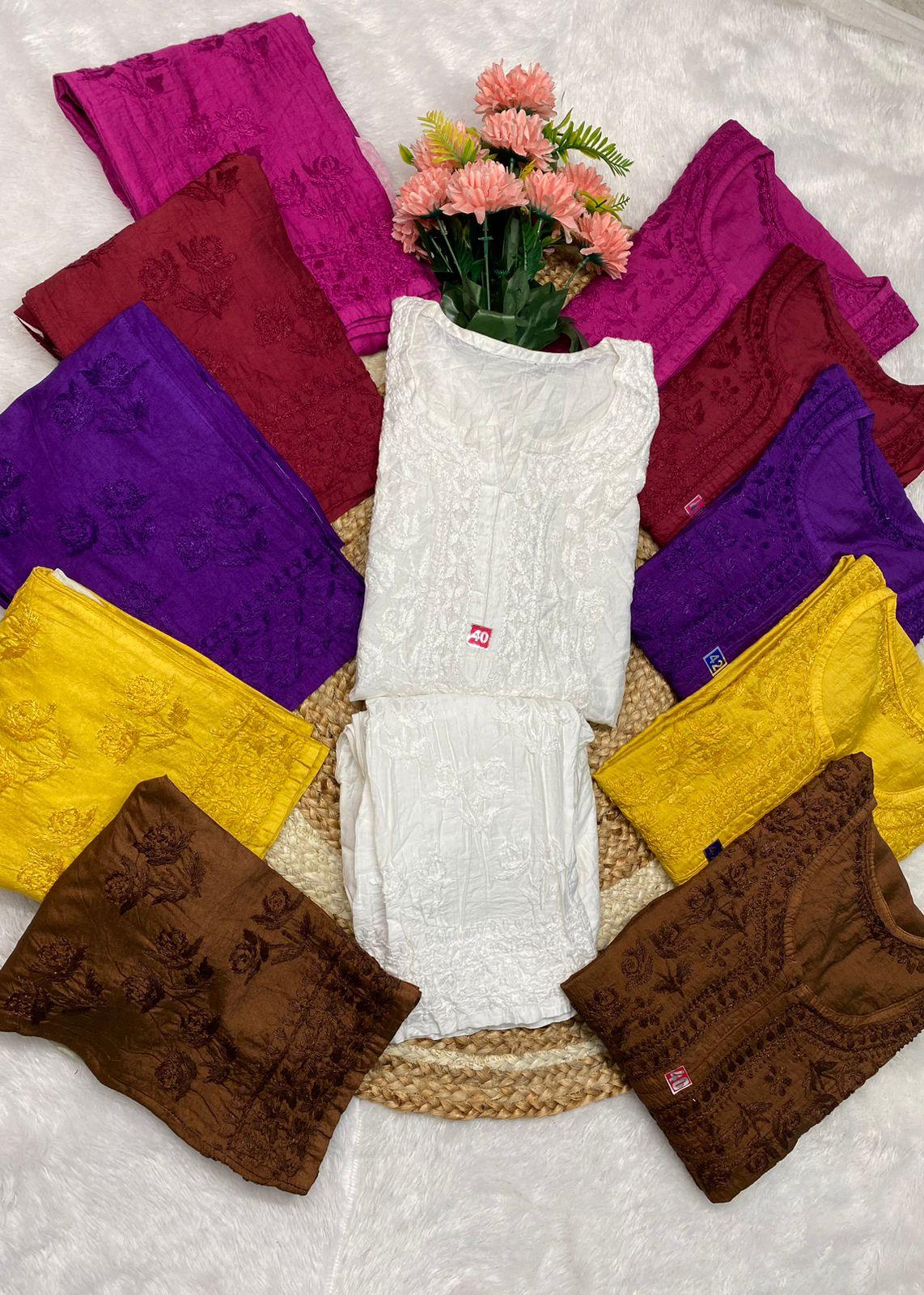Kurti: Choose a plain or lightly colored kurti as your base. Lighter fabrics like cotton, linen, or georgette work well for Chikankari.