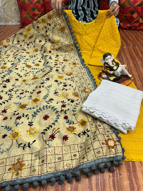 Classic Black Best Seller Georgette Mirror Gala Booti Chikankari Set with Beautiful Handwork Embroidery