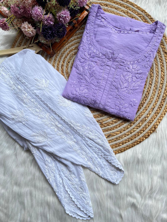 Purple Premium Heavy Work Lucknow Chikankari Modal Kurti Palazzo Set for Summer