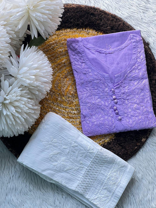 Lavender Cotton Chikankari Hand Work Kurti Suit Designs Plus Sizes