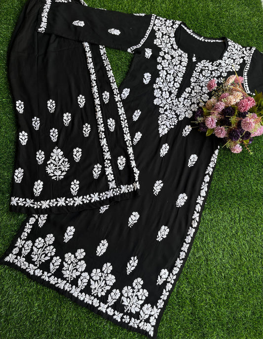 Black Premium Chikankari handwork Kurti Palazzo Set Up to Size 50