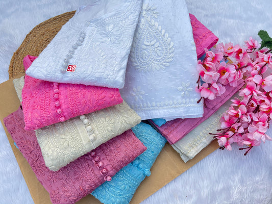 Explore the timeless artistry of Chikankari, a revered embroidery technique originating from Lucknow, India. With delicate threadwork adorning fine fabrics, Chikankari embodies elegance and tradition. Discover the intricate beauty of Chikankari Embroidery, meticulously handcrafted by skilled artisans. From graceful Chikankari Dresses and Kurtis to opulent Sarees and Lehengas, each garment tells a story of heritage and craftsmanship. Elevate your wardrobe with Chikankari Suits and Tops, perfect for both formal affairs and everyday wear. Immerse yourself in the allure of Chikankari Fabrics, from airy cotton to luxurious georgette, offering versatility and sophistication. Experience the timeless charm of Chikankari and indulge in its exquisite craftsmanship.