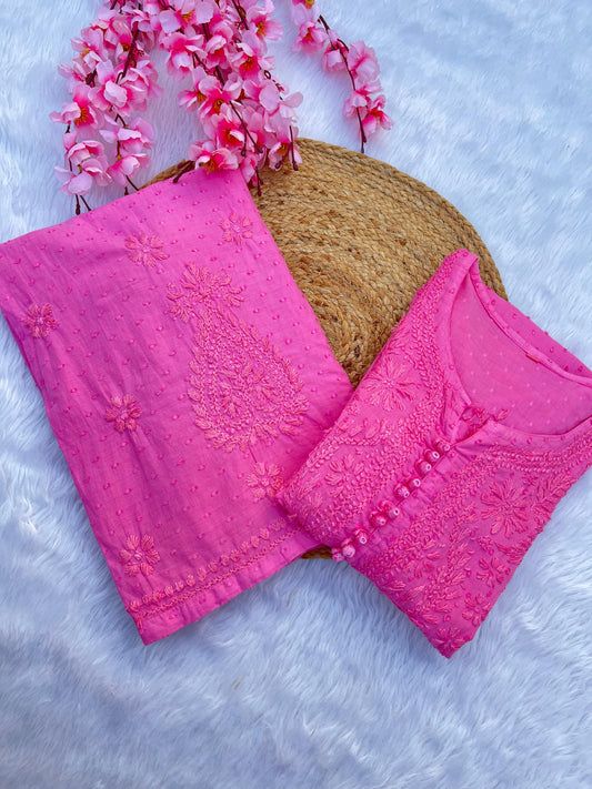 Pink Chikankari Handwork Cotton Dyeable Set , Dobby Bundi Dupatta from Lucknow