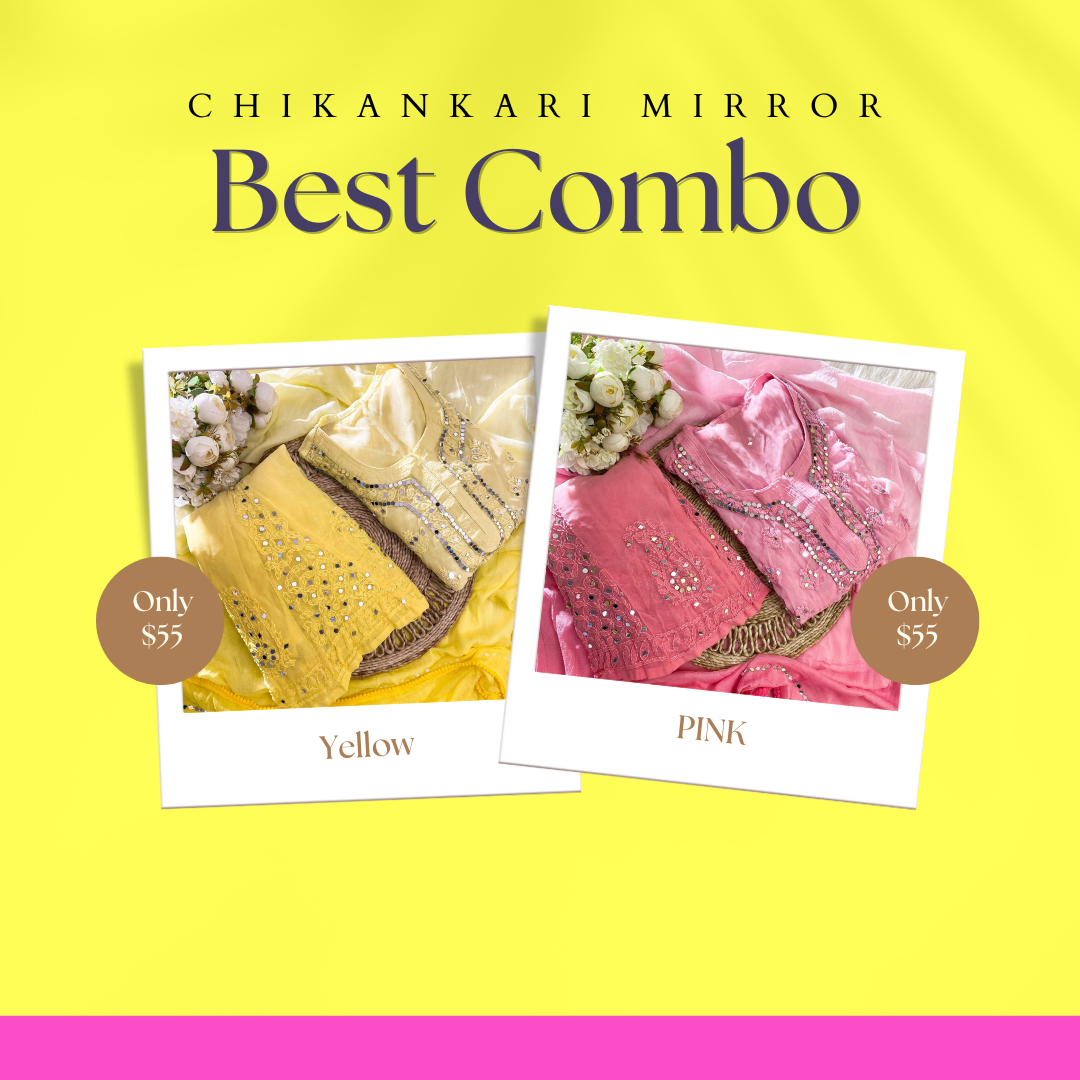 Best Value Combo Chikankari Elegance Ombré Mirror Set ( Yellow / Pink)