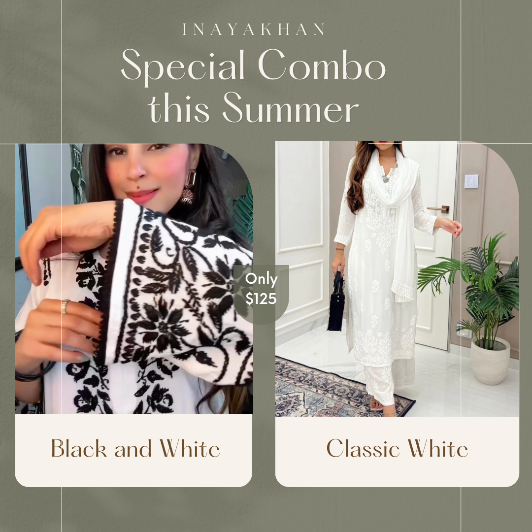 Special Combo White Chikankari 3 Pc set and Blue Cotton Coord Set
