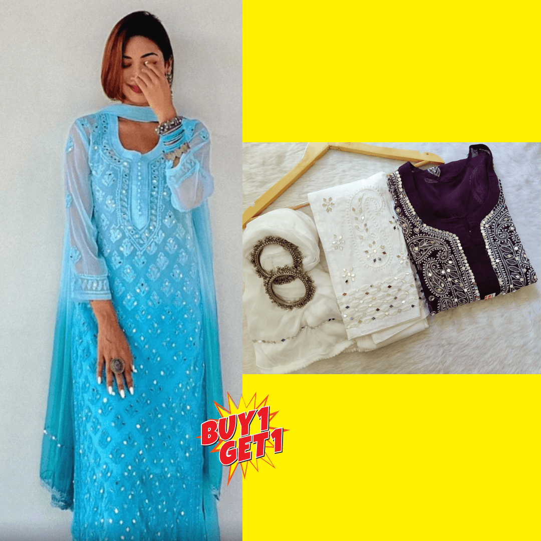 Buy 1 Get 1 Combo Price Georgette Mirror Gala Booti Chikankari Set with Beautiful Handwork