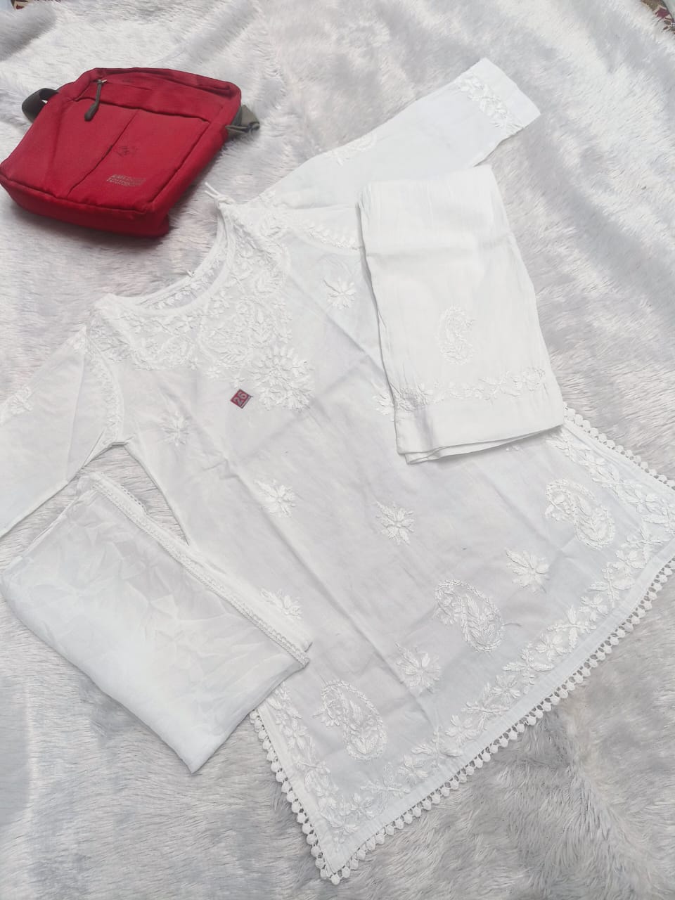 Buy 1 Get 1 Value Price Cotton Chikankari Paisley Handwork Kurta and Pant Sets